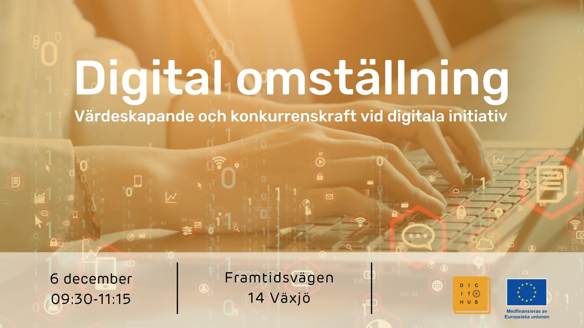 DigIT Hub bjuder in till en introduktion om digital omställning hos Växjö Linnaeus Science Park! En inspirationsföreläsning om digitalisering av företag och vad som är hinder och lösningar, följt av workshop med fokus på värdeskapande och konkurrenskraft vid digitala initiativ. Kl. 09.30 – Kaffe och Fralla Kl. 09.45 – Välkomna