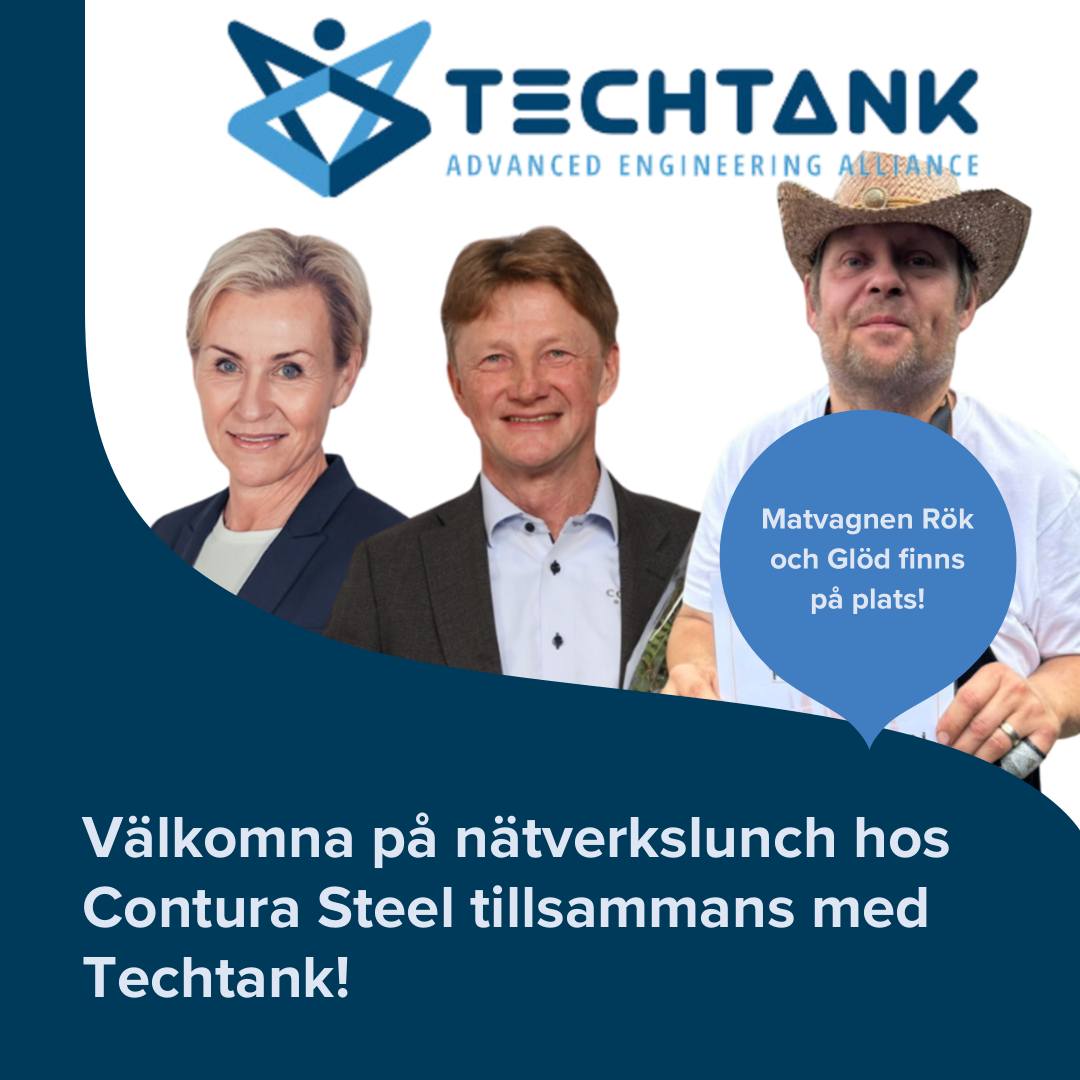 Den 17 september medverkar Techtank på nätverkslunch på Contura Steel i Mörrum – vinnare av utmärkelsen Årets företagare i Karlshamn!